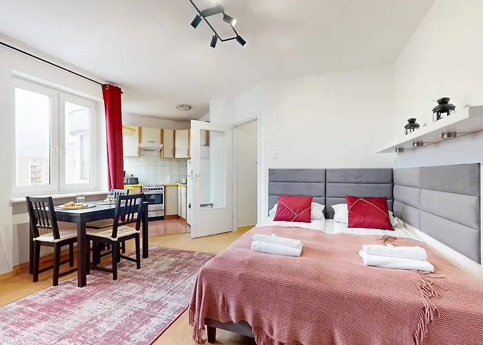 La propriété Cherry Studios Metro Natolin Ursynow est meublé avec une cuisine équipée pour la commodité des hôtes. L'aéroport de Varsovie-Chopin est à une distance de 15 minutes en voiture, et l'arrêt de bus Metro Kabaty 01 est à environ 15 minutes de marche du domicile de 30 m².